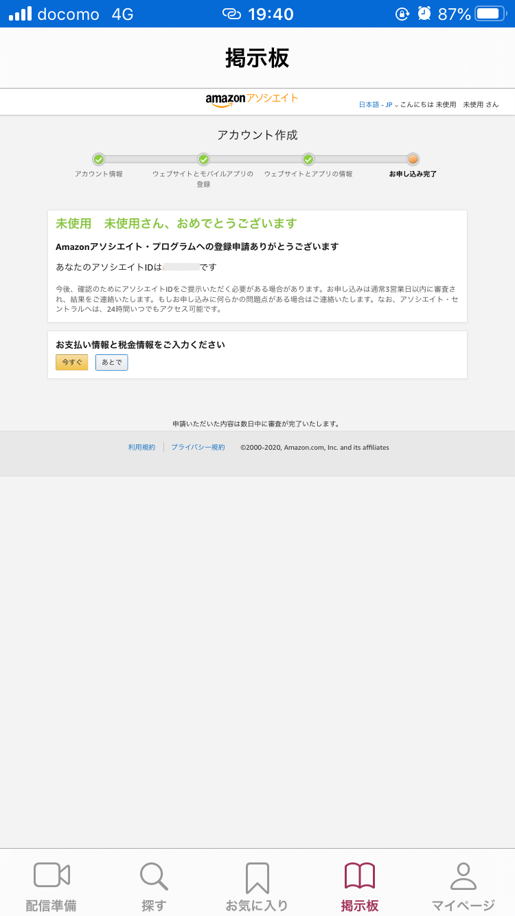 (6) 基本登録が済みましたので、「あとで」をタップします。 |