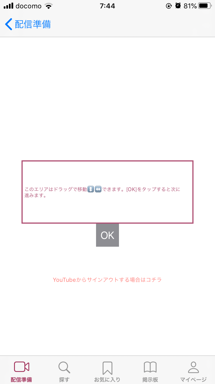 (10) 「配信準備」をタップし、最初の画面に戻ってください。「YouTube」をタップします。 |